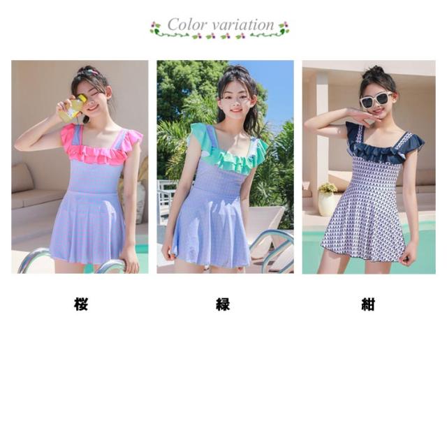 | 【商品名】ワンピース水着 【サイズ】サイズ表 【素材】ポリエステル ポリウレタン 【特徴】 人気のワンピース水着が入荷しました。 胸元のフリルが女の子らしさがアップ◎ お腹が出ないワンピースタイプなら、アクティブに遊ぶ一日だって安心◎ パンツ一体型だから、着せやすく、どんなに動き回っても安心です♪ プール・海水浴・海外や卒業旅行・リゾート・温泉等様々な場所で大活躍♪ | |