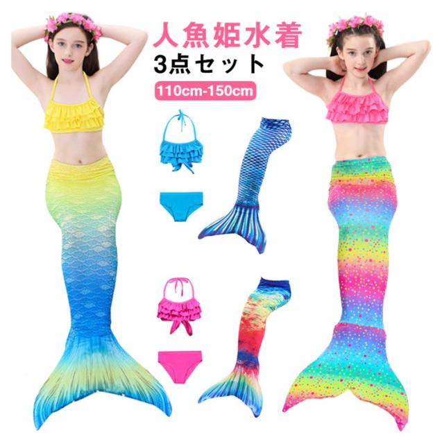 人魚姫 子供水着 キッズ 水着 マーメイド 水着 セパレート 尻尾付き 女の子 セパレート 水着 ビキニ 人魚 水着 3点セット マーメイド タンキニ 水着 人魚 水着 子供 タンキニ セパレート キッズ 子供 ジュニア 送料無料