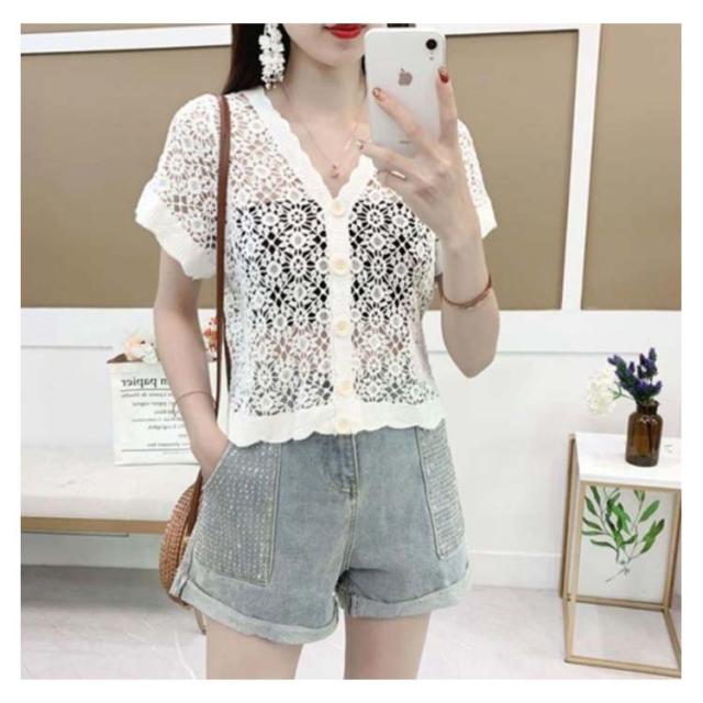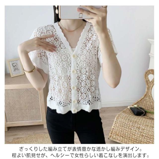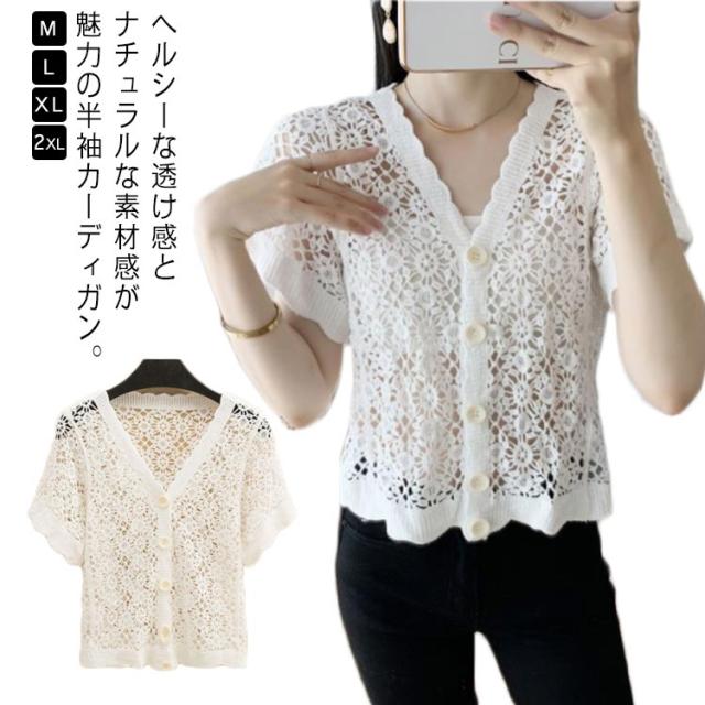 半袖 カーディガン ボレロ ニット 透かし編み ショート丈 レディース トップス サマーニット 半袖カーディガン レース アウター シアーカーディガン サマー 春夏 夏用 薄手 羽織 薄手 ゆったり UVカット結婚式 パーティー 二次会 送料無料