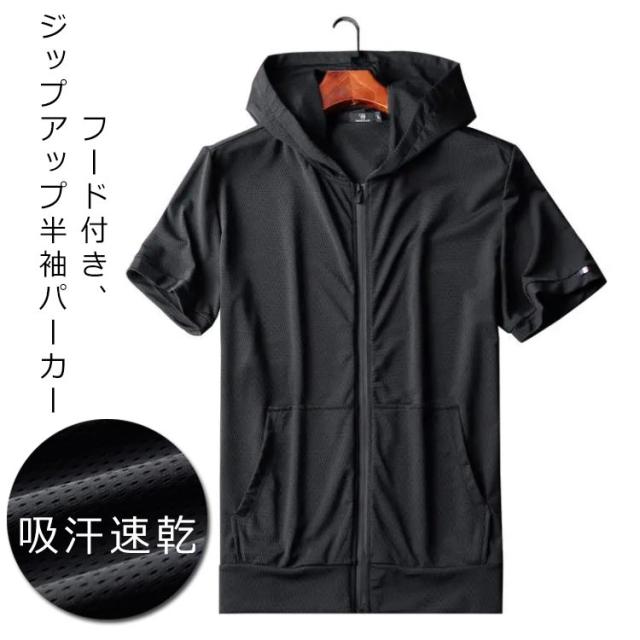ジップアップパーカー メンズ 薄手 パーカー 半袖 メッシュ 夏服 フード付き 半袖パーカー 吸汗速乾 ドライ 通気性 夏 トップス 羽織り アウトドア シンプル おしゃれ スポーツ ジップパーカー 春 夏 アウター M L XL 2XL 3XL 4XL