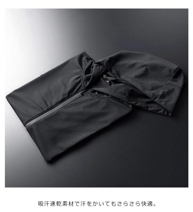 | フード付き、ジップアップ半袖パーカー 生地表面は、細かなドライメッシュ状に織られており、透け感は少なく、それでいて薄手で軽量。 強い伸縮性で動きやすく、スポーツウェアとしても活躍できる1着。 吸汗速乾素材で汗をかいてもさらさら快適。 普段着にはもちろん、フィットネス・ランニング・プール・海・様々なシーンで活躍する事間違いなし。 | |