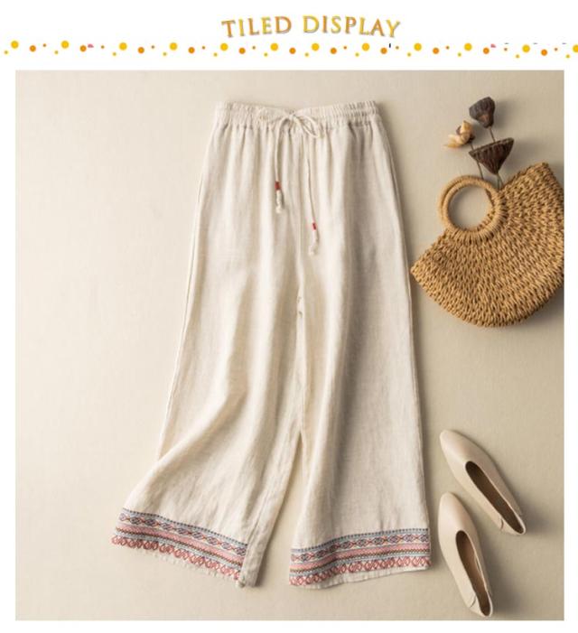 | 清涼綿麻ワイドパンツ♪ 通気性・吸湿性に優れた天然素材、蒸し暑い季節も快適に。 裾エスニック柄刺繍がワンポイントに女子力アップ♪ 1枚ボトムはもちろん、ワンピースやチュニックに重ね履きするだけでコーデが様変わりする♪ オン・オフ問わず、プラスワンで印象を変えられる使いやすいitemです。 | |