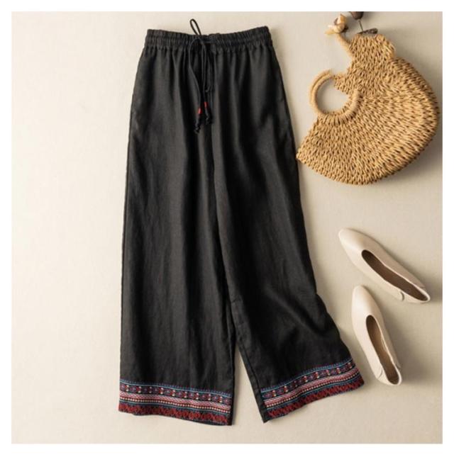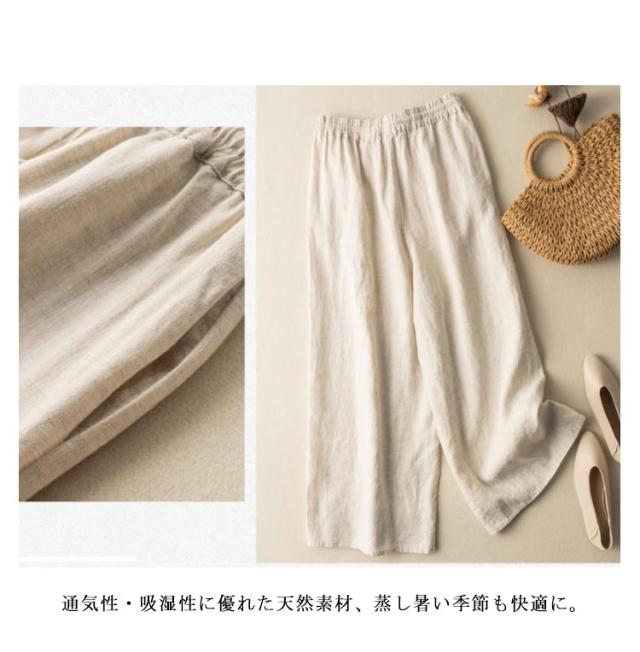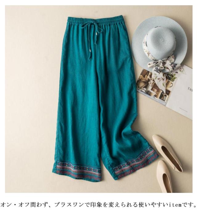 綿麻パンツ ワインパンツ リネンパンツ ワンピースとレイヤード 重ね着 ペチコート ペチパンツ レディース エスニック 刺繍 ウェストゴム 薄手 春夏 涼しい 体型カバー ストレート リラックスパンツ 麻 綿 清涼