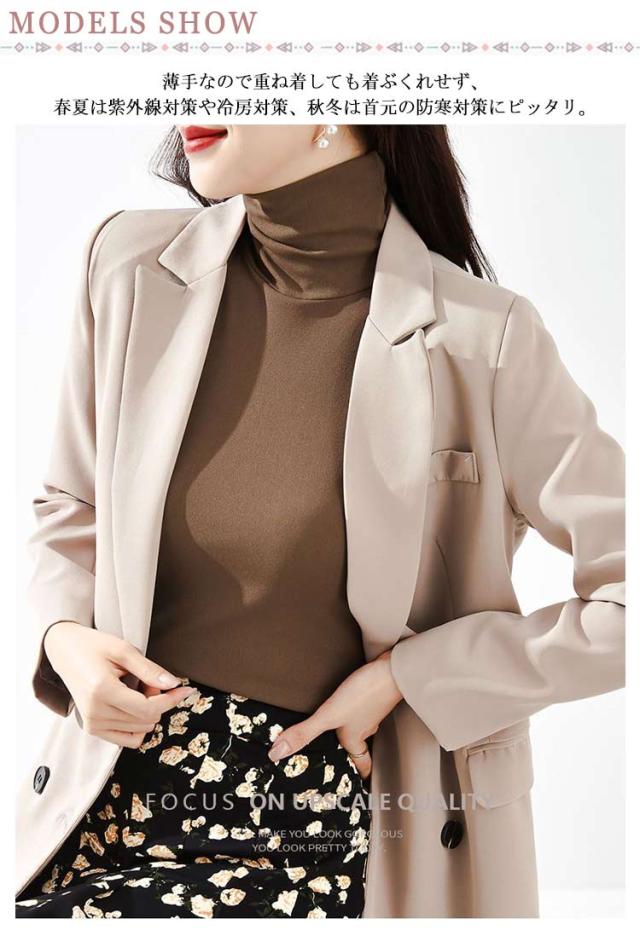 | 首が隠れるインナーとして、一枚着として オールシーズン使えまるタートルネックインナー。 薄手なので重ね着しても着ぶくれせず、春夏は紫外線対策や冷房対策、秋冬は首元の防寒対策にピッタリ。 嬉しいuvカット加工で、首の日焼け、胸元が見えない、首の老化対策にナチュラルデザインでおしゃれに首を隠してくれ、真夏の暑い日など薄着で過ごしたい時には一枚でも着れる、シンプルかつオールシーズン使える無地ボトルネックノースリーブ。 | |