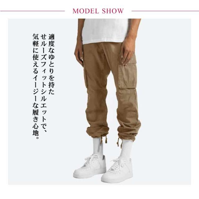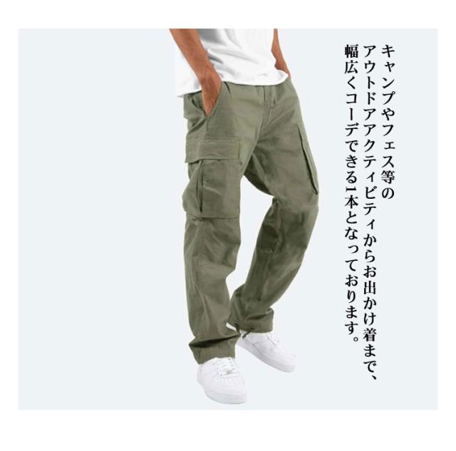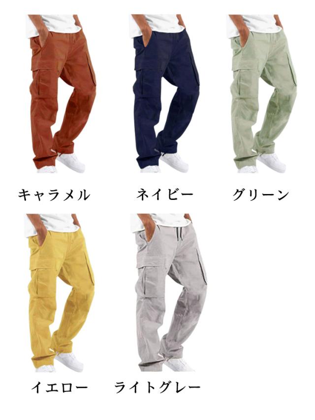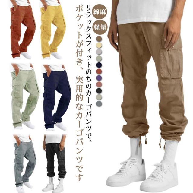 カーゴパンツ メンズ ミリタリー ワークパンツ カーゴパンツ 綿麻 ウエストゴム イージーパンツ ボトムス メンズファッション 夏 秋 秋服 春 春服 ブラック ベージュ カーキ 軽量 ゴルフ