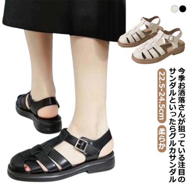 グルカサンダル レディース グルカ サンダル ビーチサンダル フラットサンダル 靴 シューズ 編み込み グルカ メッシュ ローヒール 柔らか ブラック ホワイト ストラップサンダル 履きやすい 疲れない 22.5-24.5cm