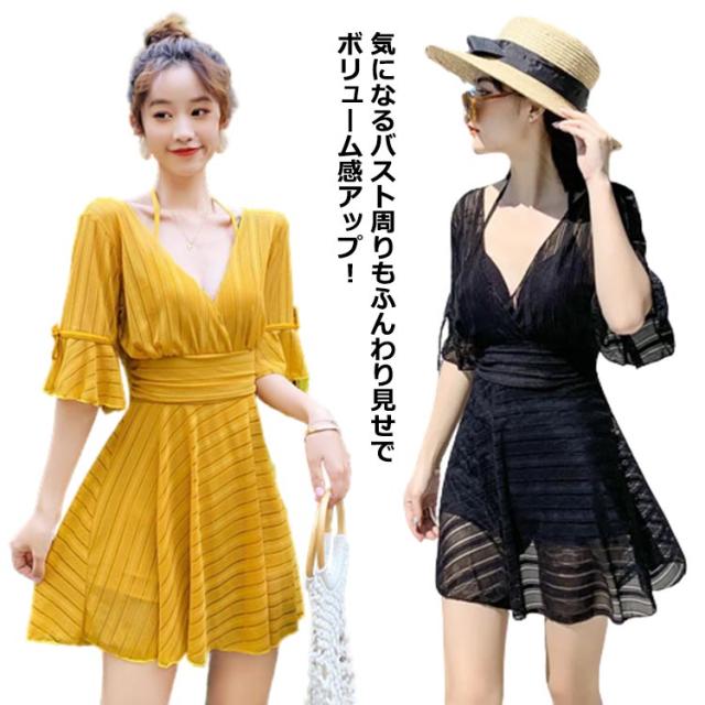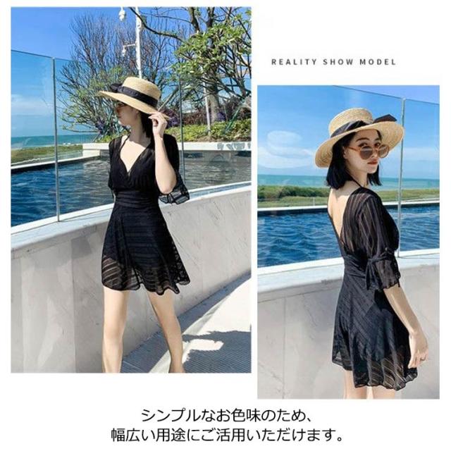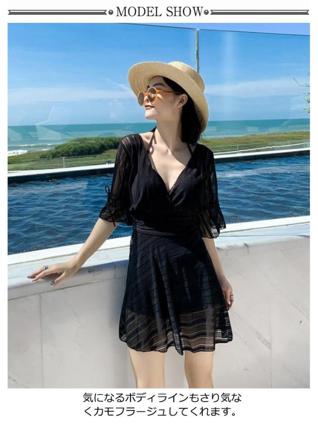 | 気になるバスト周りもふんわり見せでボリューム感アップ! 気になるボディラインもさり気なくカモフラージュしてくれます。 体型カバー・細見え効果も期待できます。 ゆったりとしたサイズ、夏の海辺へ、レジャー、水泳などにはおすすめ♪ 海水浴、プール、ビーチ、リゾート、GW、デートに♪ シンプルなお色味のため、幅広い用途にご活用いただけます。 女性らしいデザインがフェミニンな雰囲気作成! | |