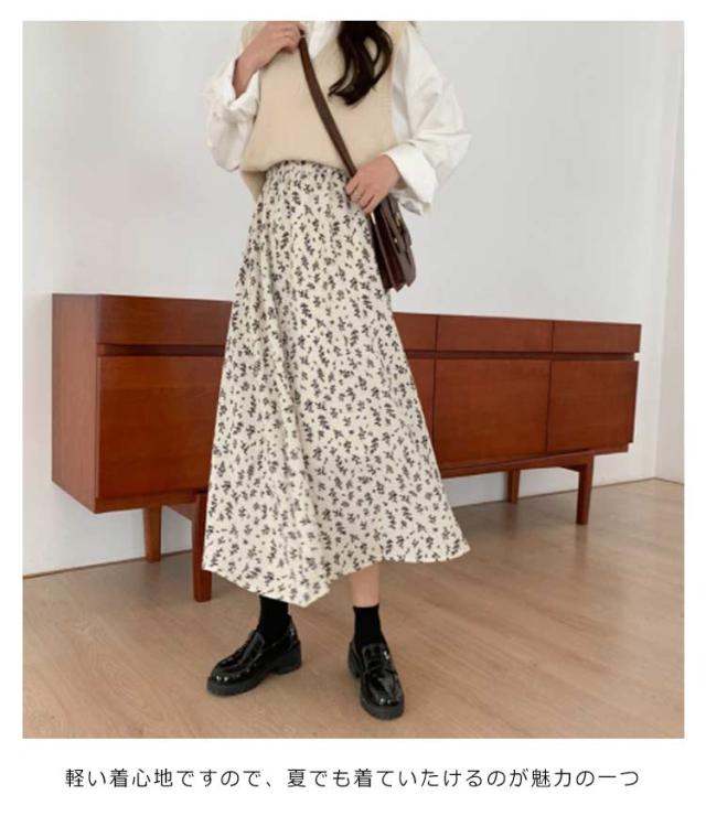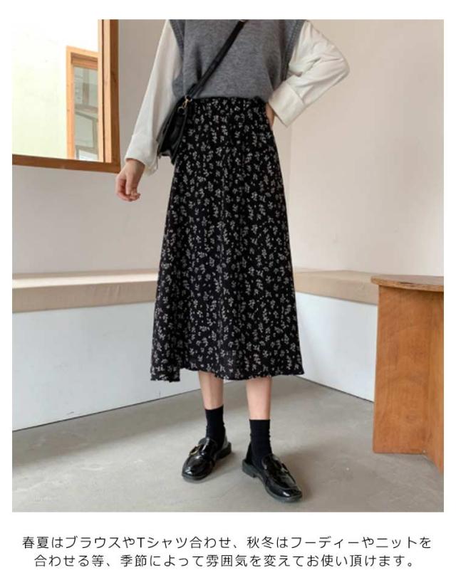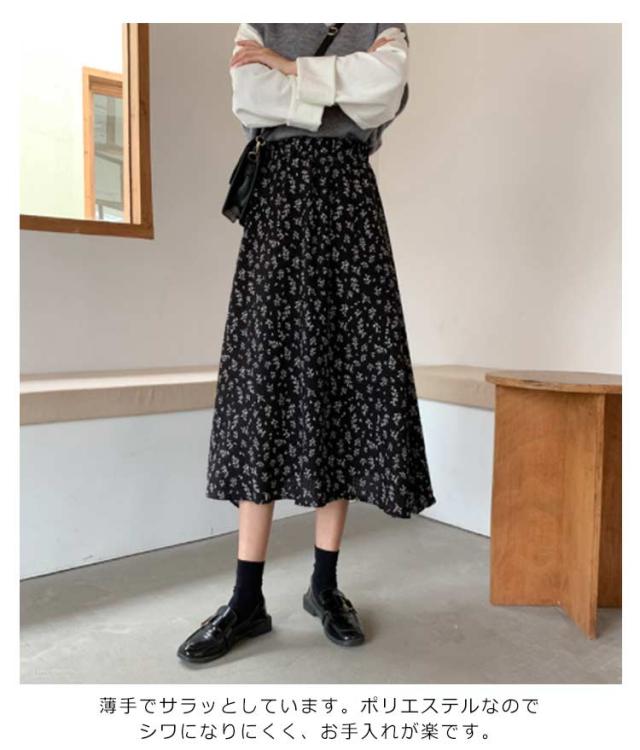 花柄 ロングスカート フレア フレアスカート タイト フラワープリント レース スカート きれいめ 小花柄 ロング丈 女子会 20代 30代 レディース 春 夏 秋 冬 黒 白 ブラック ホワイト Aライン マキシ 大きいサイズ S 〜 3XL 体型カバー ウエストゴム 涼しい 送料無料