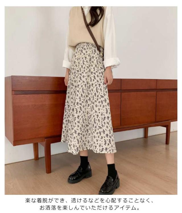 | 歩くたびにふわりと揺れる、心躍るオトナの花柄ロングスカート。 広がりすぎない綺麗なシルエットでごわつき感もなし。 ウエストゴムで着心地もラクチン!トップスのインスタイルでスッキリとした着こなしにぴったり。 薄手でサラッとしています。ポリエステルなのでシワになりにくく、お手入れが楽です。 春夏はブラウスやTシャツ合わせ、秋冬はフーディーやニットを合わせる等、季節によって雰囲気を変えてお使い頂けます。 楽な着脱ができ、透けるなどを心配することなく、お洒落を楽しんでいただけるアイテム。 軽い着心地ですので、夏でも着ていたけるのが魅力の一つ | |