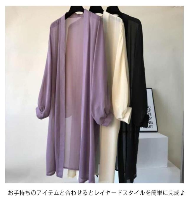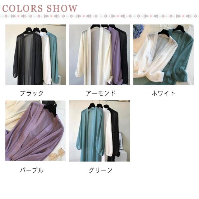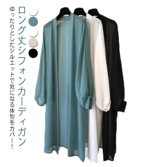 ロングカーディガン レディース ロング丈 カーディガン 透け感 長袖 シフォン 冷房対策 紫外線 UVカット サマーカーディガン 夏カーディガン 清涼感 薄手 涼しい サマー 無地 長袖 おしゃれ ゆったり キレイめ トップス 春夏 送料無料