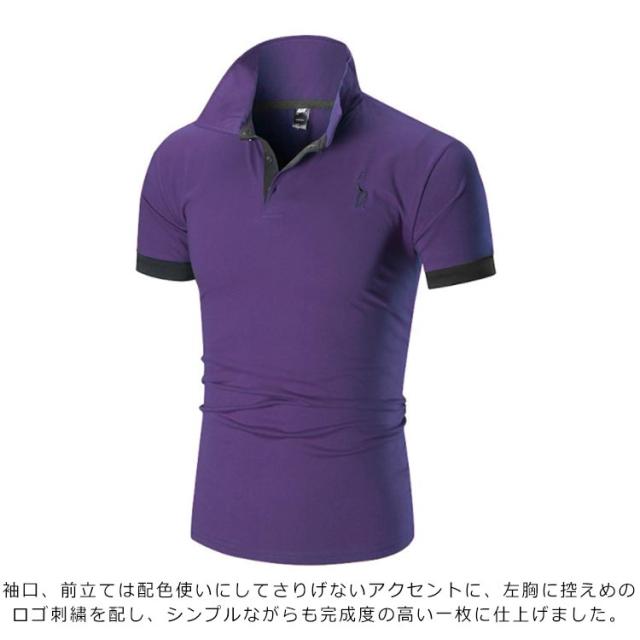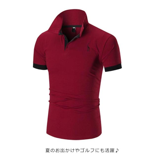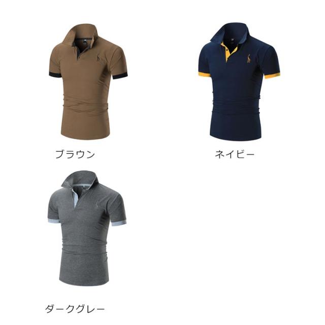 ゴルフウェア ポロシャツ メンズ 半袖 Tシャツ 配色 刺しゅう ロゴ 刺繍 スポーツウェア 薄手 スリム 細身 ゴルフ おしゃれ カジュアル トップス 大きいサイズ プレゼント ギフト 父の日 バレンタイン 誕生日 夏 全11色