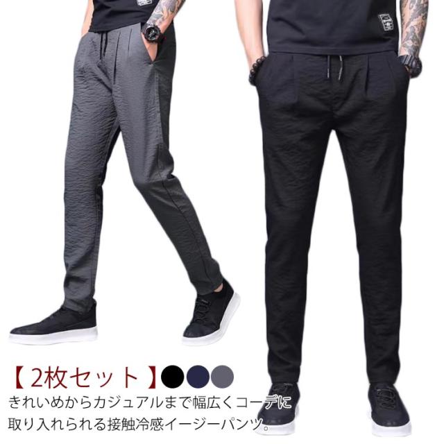 【 2枚セット 】 アイスシルク ロングパンツ メンズ アイスシルクロングパンツ アイスシルクパンツ ズボン 夏 カジュアル ゆったり 薄手 接触冷感 ストレッチ 無地 男女兼用 大きいサイズ 吸汗速乾 サルエルパンツ ワイド 送料無料