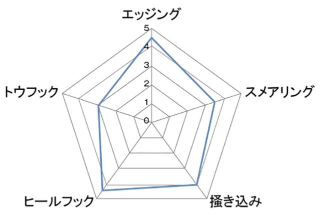 ■ターンイン&ダウントウの新ラストを採用。親指側に明瞭なポイントがあり、極小ホールドを的確にコントロール