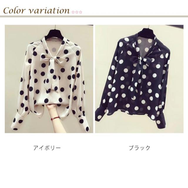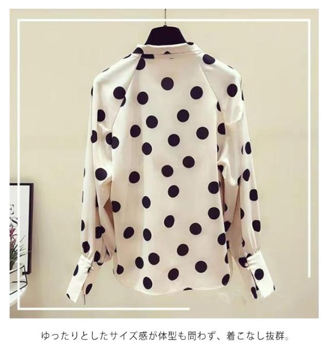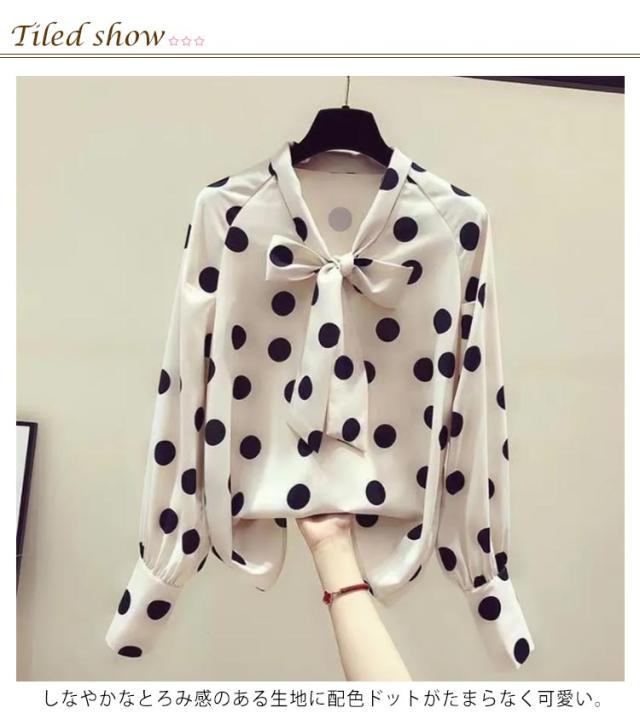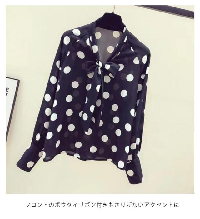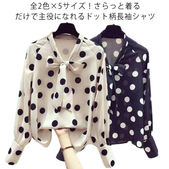 ブラウス 長袖 薄手 シャツ レディース ボウタイリボン付き ひんやり 長袖シャツ おしゃれ 大人可愛い シャツ ドット柄 水玉柄 トップス シフォン とろみシャツ 着?せ リボン 大人 かわいい 春夏 ギフト プレゼント ゆったり 体型カバー 送料無料 大きいサイズ