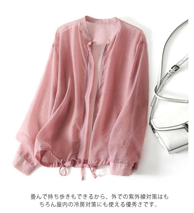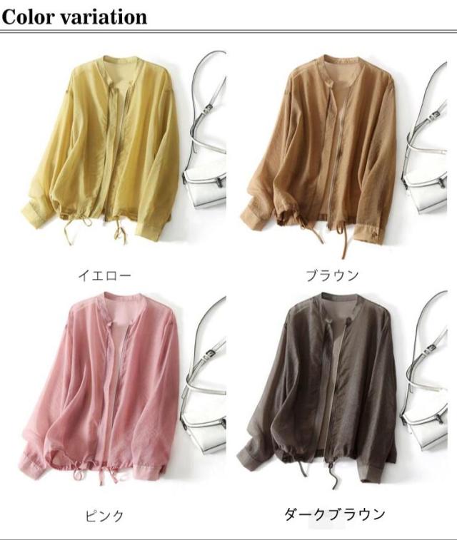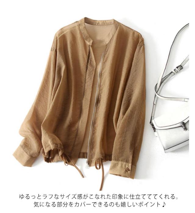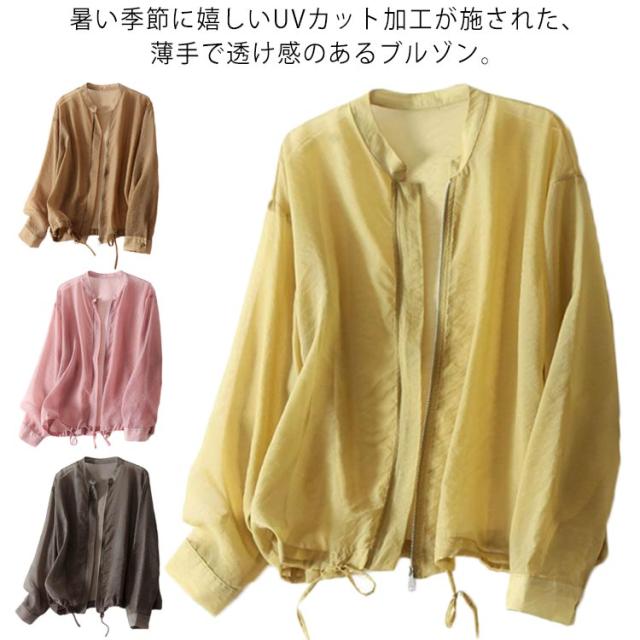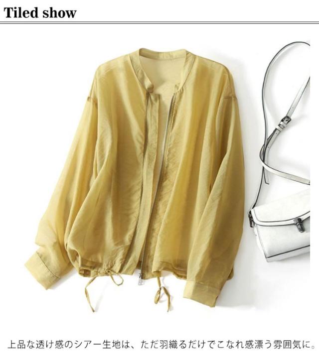 ブルゾン レディース シアーブルゾン 透け感 シースルー MA-1 ジャケット 春夏 紫外線 UVカット アウター 長袖 ライトアウター 薄手 軽い 羽織 ジップアップ ゆったり ガーゼブルゾン 冷房対策 日焼け防止 ノーカラー ジャケット ゆったり 春 夏 送料無料