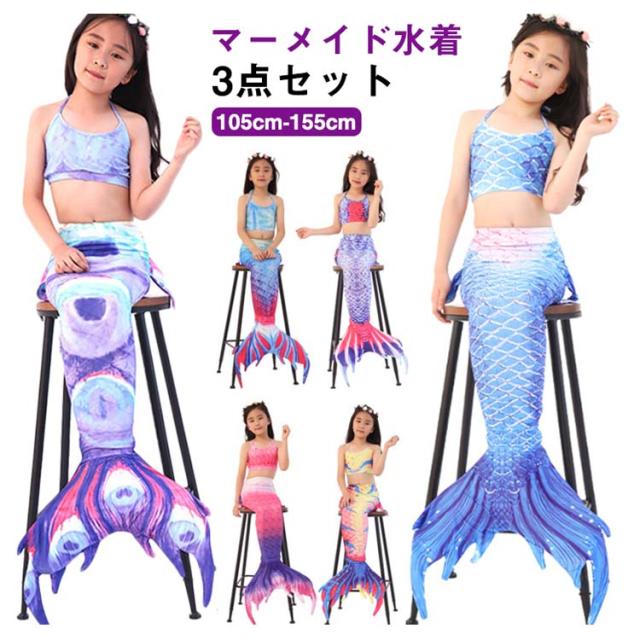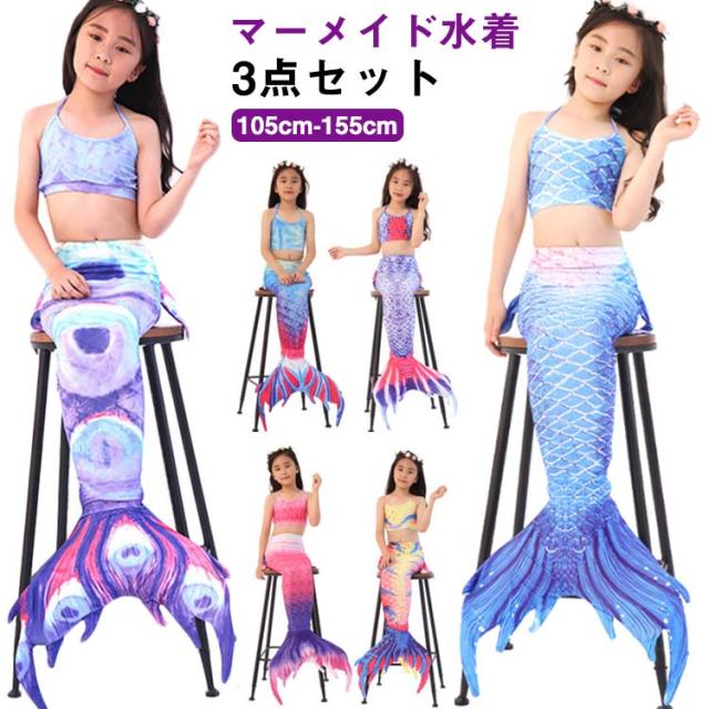 人魚 水着 3点セット 女の子 セパレート 水着 キッズ 水着 タンキニ マーメイド 人魚水着 タンキニ 水着 セパレート 人魚姫 子供水着 ビキニ 尻尾付き 子供 マーメイド 水着 セパレート キッズ 子供 ジュニア 送料無料