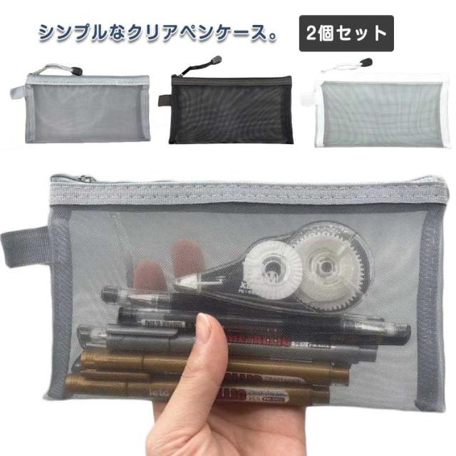 ペンケース 2個セット 透明 送料無料 高校生 女子 シンプル クリアペンケース メッシュ 筆箱 かわいい 中学生 大学生 高校生 男子 無地 クリア ペンポーチ 小物入れ コスメポーチ 収納ポーチ 軽量 おしゃれ メッシュケース