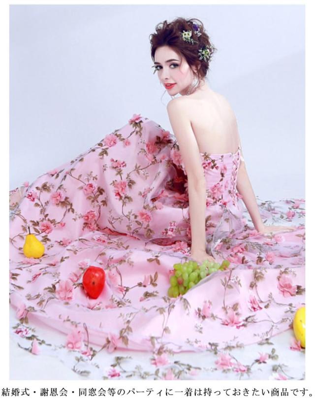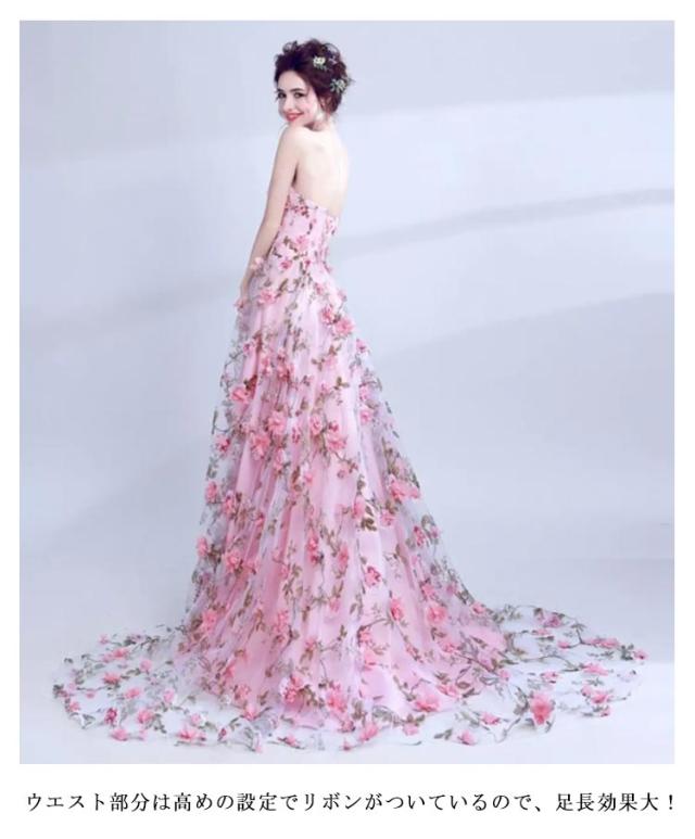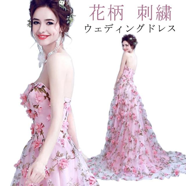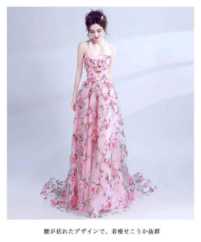 レディース ウェディングドレス カラードレス 結婚式 花柄 花嫁 披露宴 刺繍 二次会 パーティードレス 演奏会 お嫁さん 発表会 誕生日会 少女 ピンク