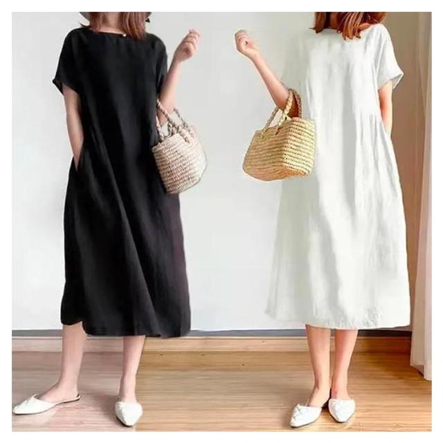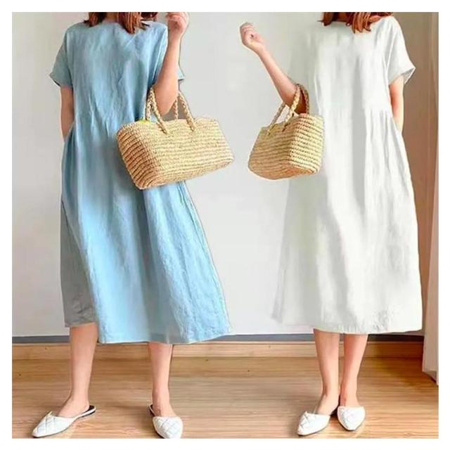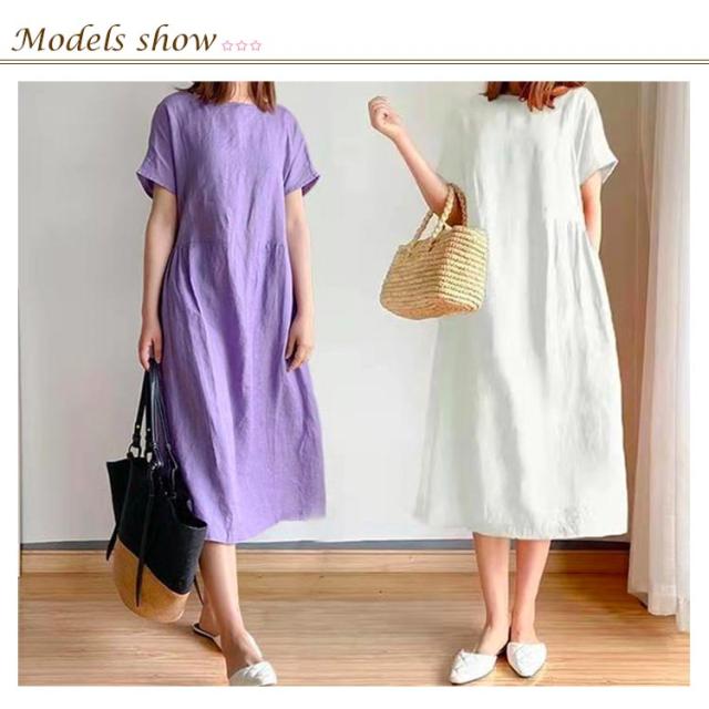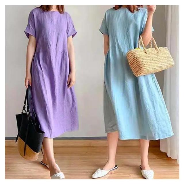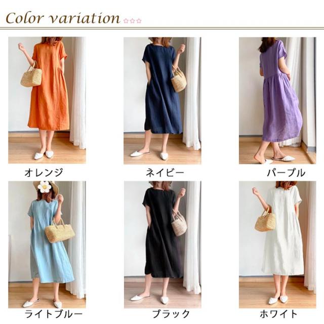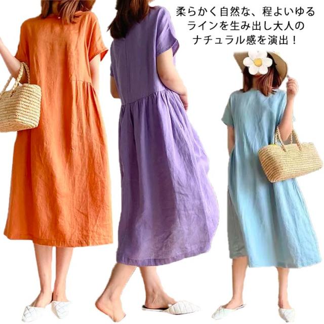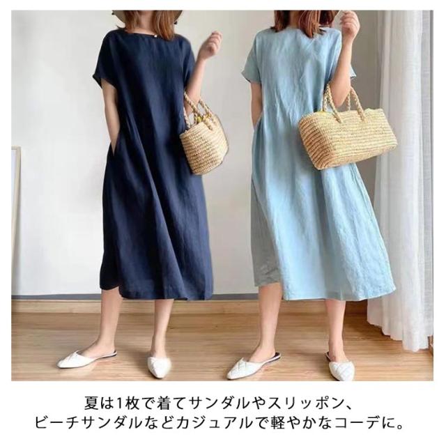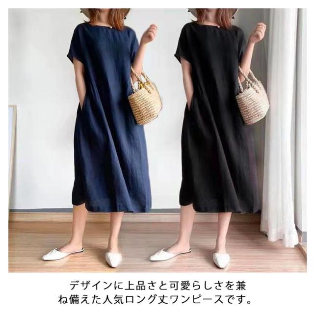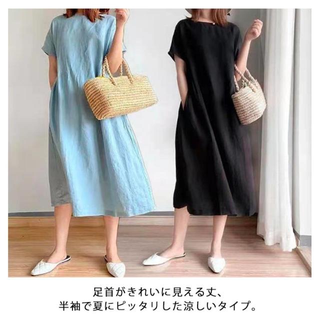 ワンピース ロング丈ワンピース 半袖 ナチュラル 夏ワンピース 春 カジュアル おしゃれ マキシワンピース Aライン ランドネック 薄手 無地 シンプル ゆったり 体型カバー 着?せ 細見え 大きいサイズ プレゼント ギフト 送料無料