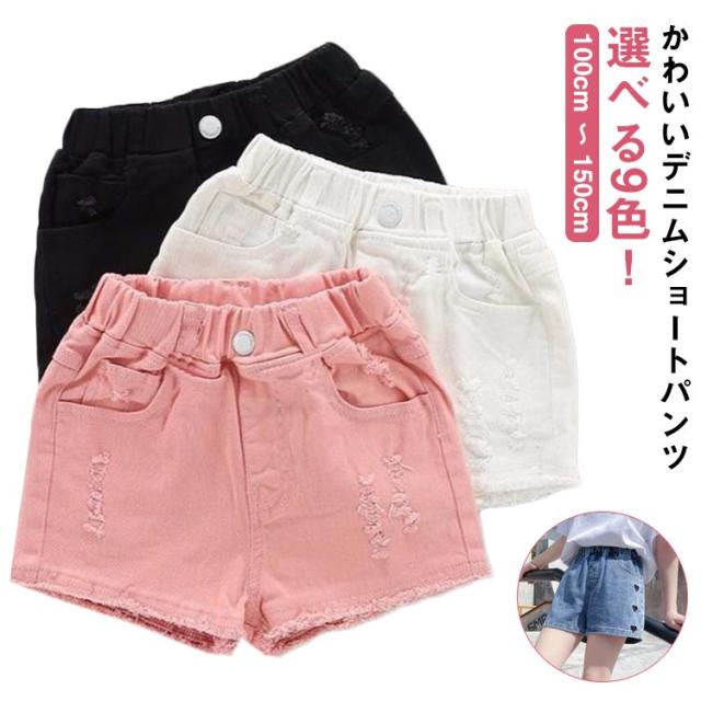 ショート デニム 半ズボン 韓国系子供服 ショートパンツ デニム キッズ 子供服 女の子 デニム キッズ ショートパンツ ウエストゴム ガールズ ジュニア 通学 ダメージ クラッシュ 半ズボン ジーンズ ボトムス 女の子 ガールズ 女児 半ズボン カジュアル 夏 送料無料
