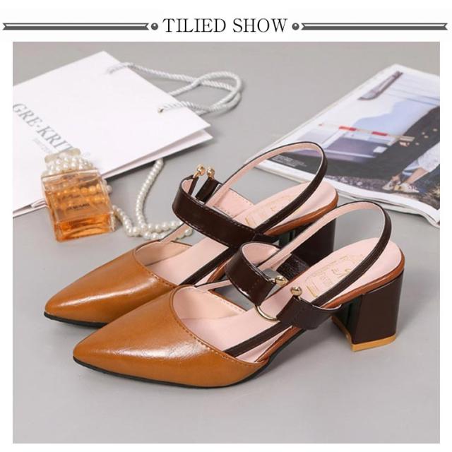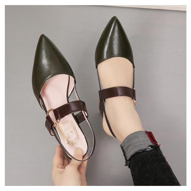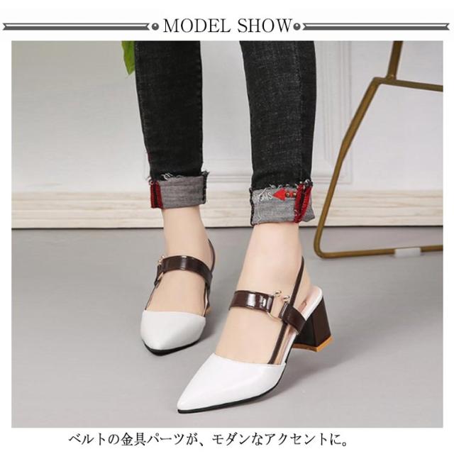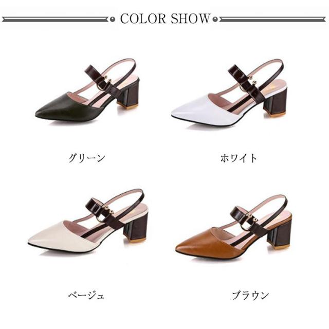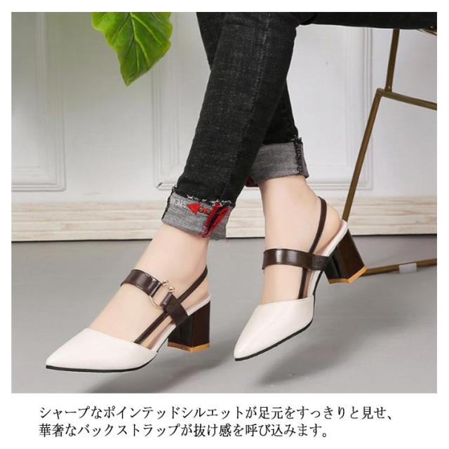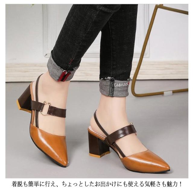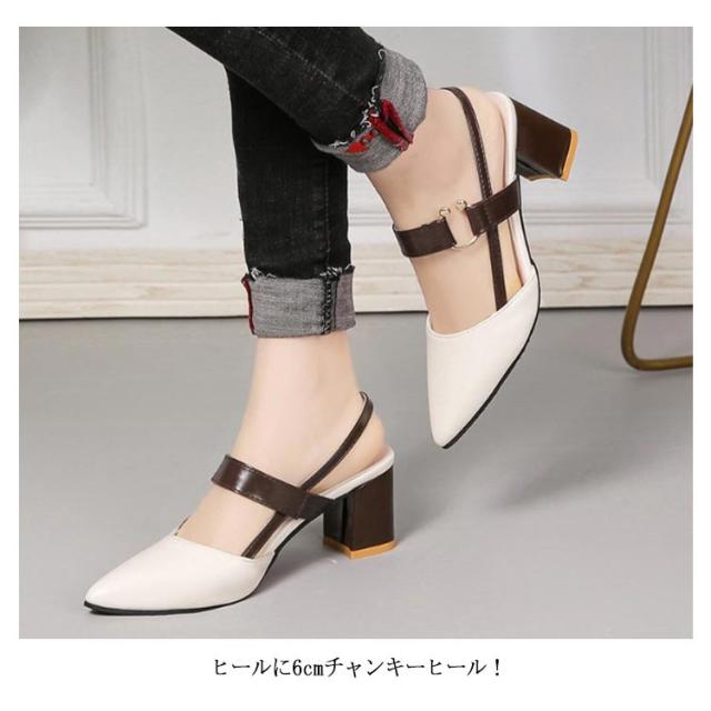 パンプス バックストラップ チャンキーヒール ミュール ヒール ポインテッドトゥ ストラップ 6cmヒール バックバンド 走れる 痛くない 歩きやすい きれいめ おしゃれ 大人可愛い 春 夏 全4色