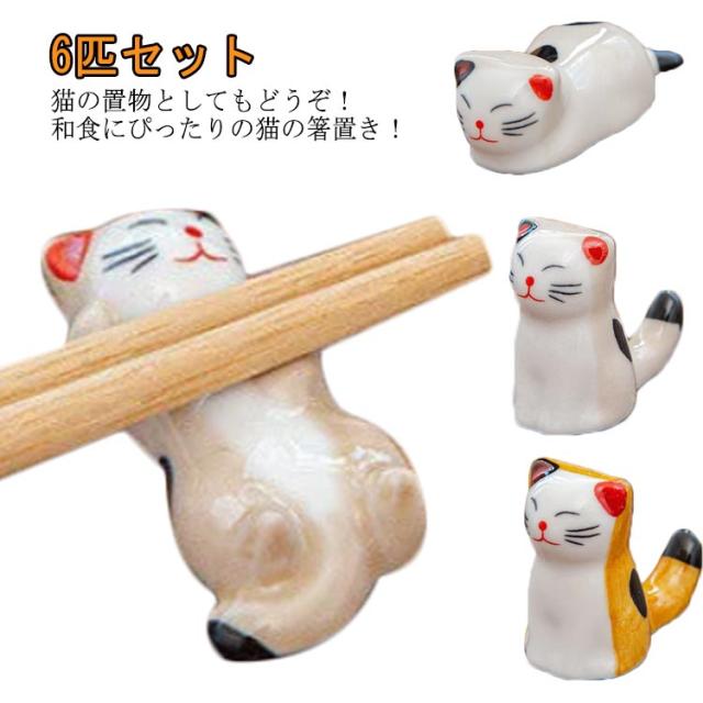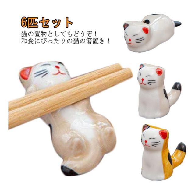 箸置き はしおき 箸休め 和食器 箸台 陶器 カラトリーレスト ナイフレスト スプーンレスト 可愛い ねこ 6匹セット キッチン雑貨 お洒落 インテリア 居酒屋 飲食店 業務用 送料無料
