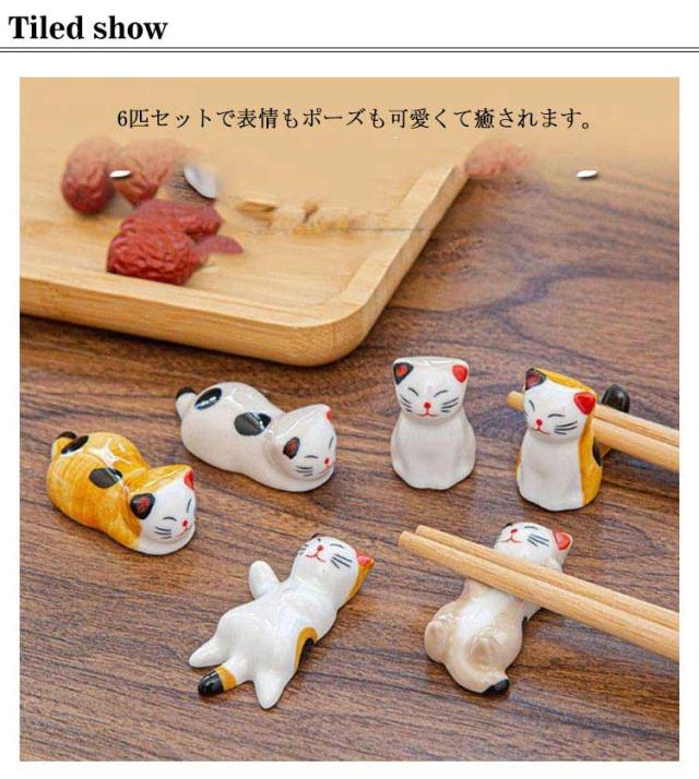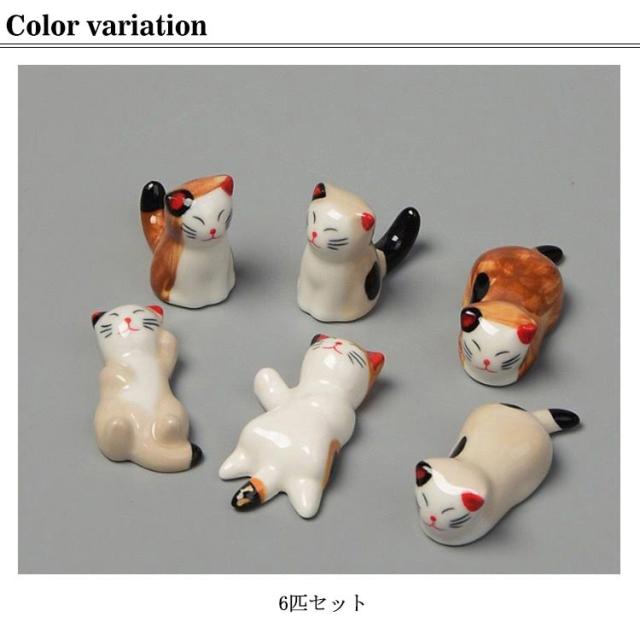 | 猫の置物としてもどうぞ!和食にぴったりの猫の箸置き! 6匹セットで表情もポーズも可愛くて癒されます。 箸先がテーブルに触れず、テーブルも汚さず、健康を守ります。 箸置きとしてだけでなく、置物としても好評です。 猫好きの方にはたまらない逸品です。 | |