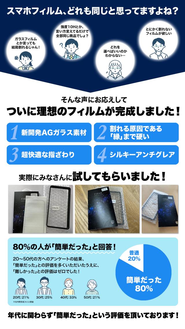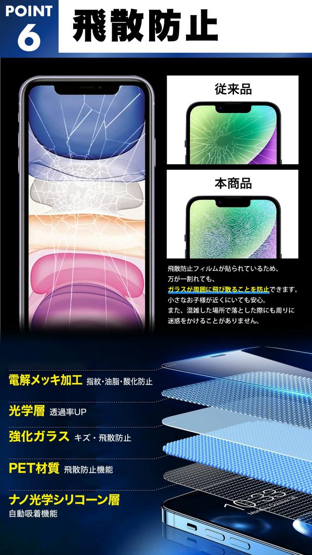 | 特徴 | 【 優れた5つの ポイント 全面保護 フィルム 】 (1) デザイン性の高い 2.5D ウルトラ クリア 保護フィルム (2) 全面保護タイプなのでiPhoneの端までしっかり保護します。 (3) 硬度は最高レベル 10H 強化ガラス 画像や映像も色鮮やかに映します。 (4) オレオフォビックコーティングでガラスフィルムの汚れもクロスで拭き取れます。 (5) 簡易 ブルーライトカット に加え、太陽光(紫外線)から画面を守る「UVカット」 【 縁まで硬い最高硬度10Hガラスフィルム 】 新しい時代のiPhone保護フィルムが登場 独自アンチグレア技術を搭載し、自社オリジナル技術によって開発されたこのフィルムは、 最新のテクノロジーが凝縮された逸品です。 硬度10Hの素材で作られ、頑丈さと割れない性能を備えています。 これまでにない頑丈さと硬さを持つため、本体を傷つける心配はありません。 iPhone専用に設計されたこのフィルムは、最新のデザインに完璧にフィットし、 本体をしっかりと保護します。 【10H硬度で傷から守る】 キズに強い、だけじゃない。 引っかきキズに強く、画面にキズがつきにくい表面硬度10Hのガラス基盤材を使用。 でも最近のガラスフィルムはキズに強いのが当たり前。 キズに強い だけじゃない、+αの魅力を持ったガラスフィルムが生まれました。 コア工程を経て製造されたガラスフィルムは強靭な耐久性を誇り、 金属との摩擦や衝撃により強い構造となっています。 強固な防御力で大切なデバイスをキズや衝撃からしっかり守ります。 【 白くなりすぎないなめらかなアンチグレア 】 独自の配合で生み出したアンチグレアフィルムは、一般的なアンチグレアフィルムに比べて 白くなりすぎず、快適な操作性を実現。 さらさらな触り心地は一度試せば病みつきに。 これまでにない最高の指感触です。 【 新領域の 2.5D エッジ iPhone専用 ガラスフィルム 】 一般的な ガラスフィルム はフチまで保護できず、露出してしまいます。 当製品は 全面保護 できるよう最新の ガラス加工 により iPhone 画面全体 を カバー できます。 そのため、 音ゲー やパズルゲームなどのスマホゲーム用にもおすすめ 【 iPhone ケース に ガラスフィルム が干渉しません 】 フロントガラスの継ぎ目ギリギリまで カバー する フルカバー 仕様ですが、 画面枠の接着を数ミリ内側にずらすことで iPhone ケース ( 手帳型 ジャケット型 バンパー カバー 型)に干渉することなく装着できるようになりました。 【 10H 耐久 強化ガラス 傷防止 飛散防止 全面保護 ガラス 】 日常生活の iPhone スマホ 液晶 画面 への傷を 保護フィルム が防ぎます。 カバンやバッグの中でも 全面保護 の フルカバー設計 ガラスフィルムだから iPhoneの液晶をフィルムが傷から守ってくれるので安心です。 【 オレオフォビックコーティング 保護シート 吸着性UP 指紋防止 】 最新の吸着技術により持ち運び時の 保護フィルム 剥がれを防止 特殊コーティングで油や水をはじき、付いた指紋も拭き取ることができます。 また、 ガラスフィルム を装着することで日焼け止めやハンドクリームなどの 付着を防ぐことができ、劣化から iPhone 本体をフィルムが守ります。 |