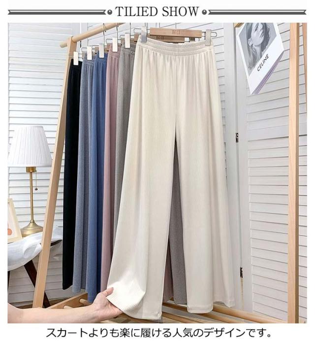 | いろんなスタイルに合う万能ボトム! スカートよりも楽に履ける人気のデザインです。 コーディネートしやすいトレンドカラーで揃えました。 ウエストはゴム仕様でで楽チン。 ゆったりとしたシルエットで体型カバーをしながら、きれいなドレープで上品さを演出。 | |