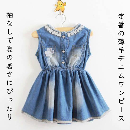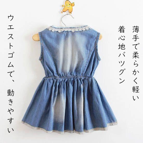 キッズ ワンピース ノースリーブ 子供服 デニムワンピース