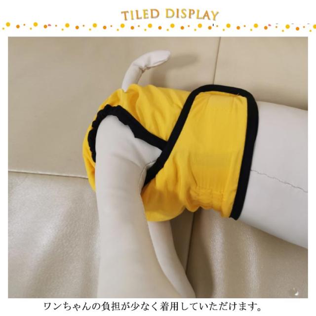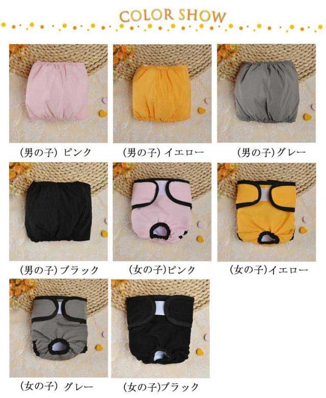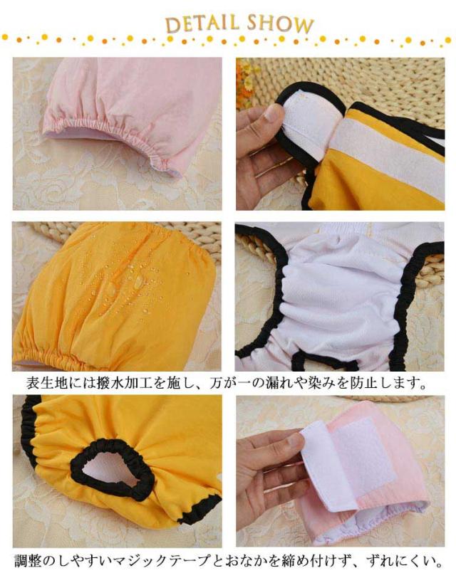 | 男の子用と女の子用の2タイプをご用意。 裏面は通気性に優れているメッシュになっているので、 ワンちゃんの負担が少なく着用していただけます。 表生地には撥水加工を施し、万が一の漏れや染みを防止します。 ゴムが入っていて体にフィットしてずれにくくなっています。 調整のしやすいマジックテープとおなかを締め付けず、ずれにくい。 洗濯して再利用可能、経済的で環境にやさしい。 | |