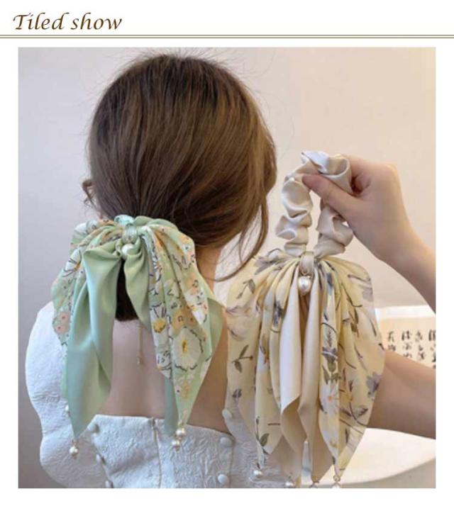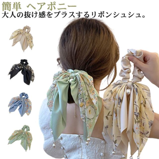 送料無料 シュシュ リボン スカーフ柄 ヘアアクセサリー ヘアゴム ヘアアクセ ヘアアレンジ 髪飾り 髪留め 大人っぽい かわいい ヘアポニー シュシュ 簡単 アレンジ 大人 おしゃれ