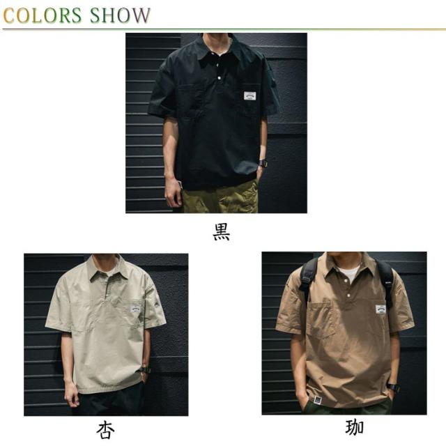 ビッグシルエット パーカー 半袖 メンズ 半袖パーカー 襟付き Tシャツ ポロシャツ プルオーバーパーカー 薄手 夏服 春夏 トップス シンプル カジュアル アメカジ ストリート系 かっこいい M L XL 2XL 3XL