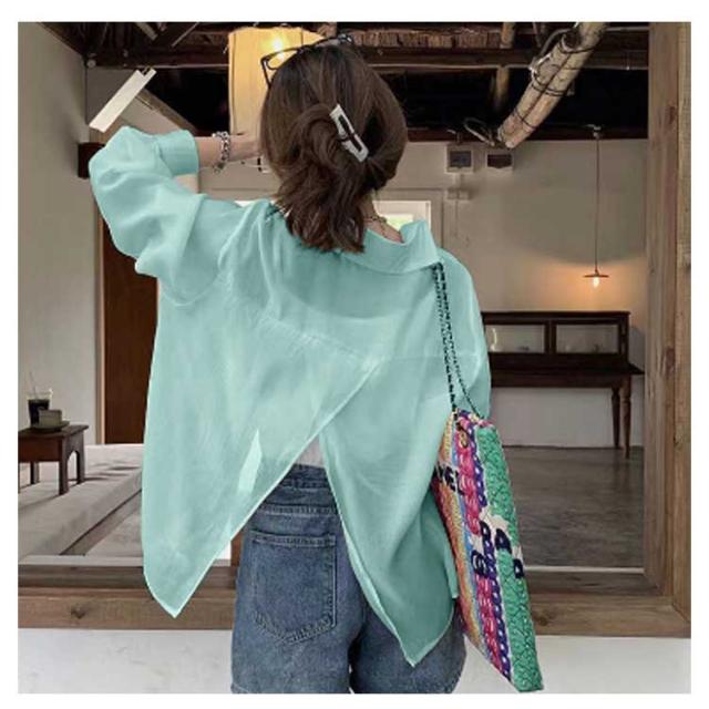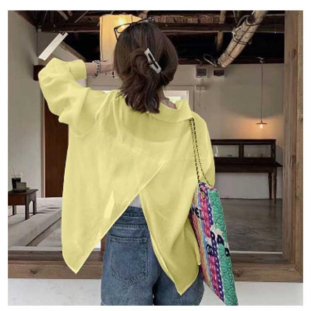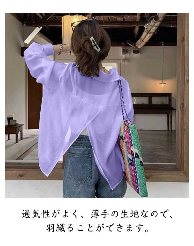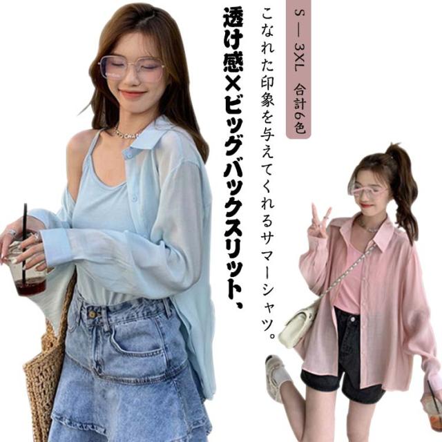 送料無料 バックスリット シアーシャツ レディース ロングシャツ かわいい 長袖シャツ 春夏 トップス 透け感 シアートップス シャツ 春服 夏服 大きいサイズ S M L XL 2XL 3XL