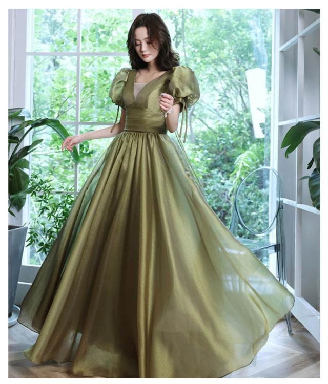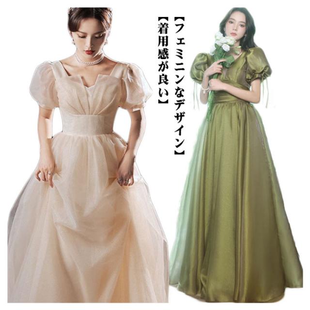 ロングドレス お嬢様 プリンセスライン ウエディングドレス お呼ばれドレス 宴会 フェミニン マキシ丈ワンピース Aラインドレス 結婚式 パーティードレス 披露宴 ピアノ 発表会 着痩せ 撮影 花嫁 演出会 演奏会 半袖ワンピース リボン セクシー 女子会 イベント 緑 ワイン