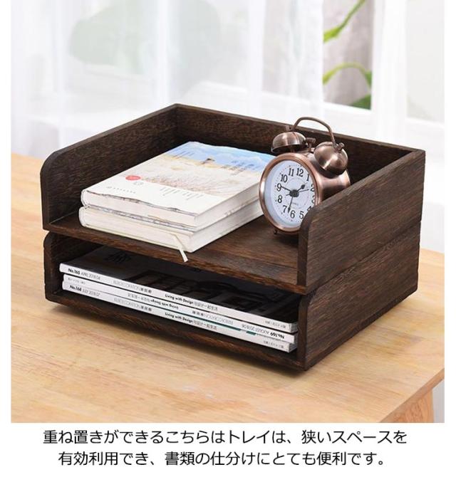 木製 ファイルボックス トレー 卓上収納 ファイルラック 書類トレー デスクトレー 積み重ね レターファイリング 新聞 雑誌 書類入れ(ナチュラル) レタートレー スタッキング 収納 引き出し 卓上収納 チェスト アンティーク調 天然木