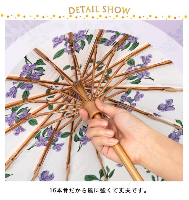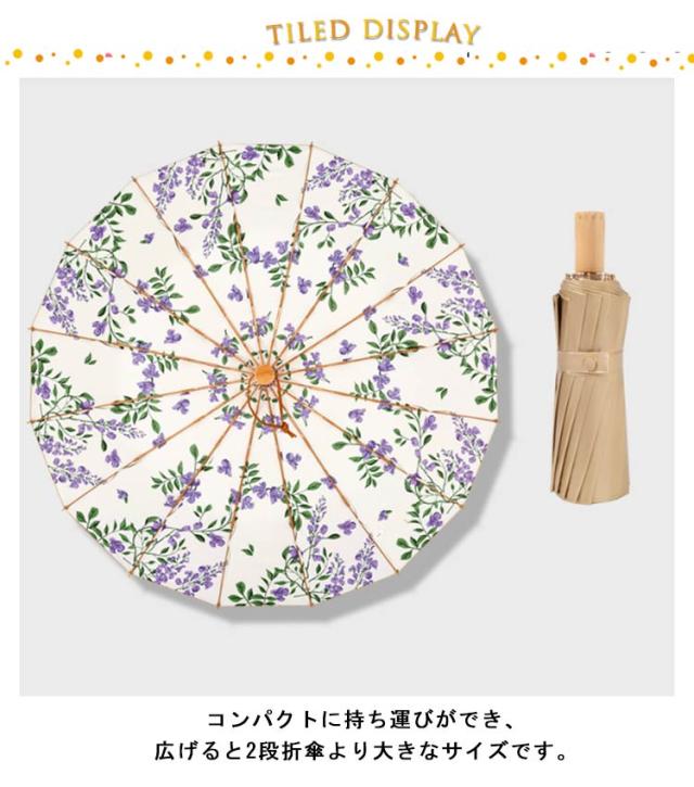 | 裏面の花柄が魅力のデザイン日傘です。 遮光率が99.9%以上、UV遮蔽率99%以上で真夏の紫外線も遮る 。 また、降雨時のご使用においても防水性に優れているので雨の日、晴れの日兼用でご利用頂けます。 16本骨だから風に強くて丈夫です。 コンパクトに持ち運びができ、広げると2段折傘より大きなサイズです。 | |