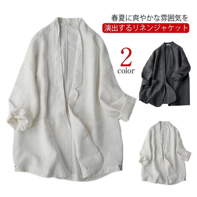 サマージャケット レディース UVカット テーラードジャケット 送料無料 ゆったり テーラード ジャケット 綿麻ジャケット ロング 長袖 リネンジャケット 麻 リネン アウター 薄手 春夏 ライトアウター 羽織り 軽い 涼しい 冷房対策 無地 シンプル