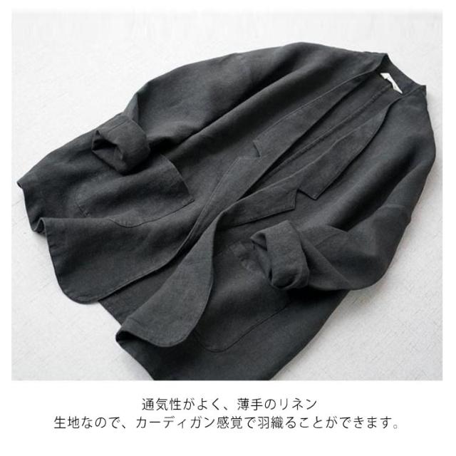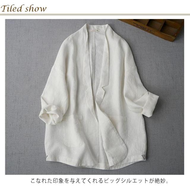 | 春夏に爽やかな雰囲気を演出するリネンジャケット。 こなれた印象を与えてくれるビッグシルエットが絶妙。 程よくゆったりと着用できるサイズ感で着心地抜群。 通気性がよく、薄手のリネン生地なので、カーディガン感覚で羽織ることができます。 ワンピースやパンツスタイルなど、いろいろなコーデに合わせやすい♪ | |