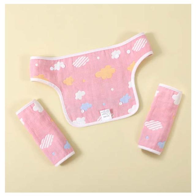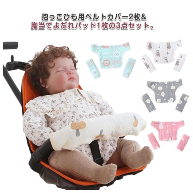 【送料無料】抱っこ紐カバー 3点セット よだれパッド サッキングパッド 抱っこひも よだれカバー 抱っこ紐 おんぶ紐 カバー 胸当て シートベルトカバー チャイルドシート カバー リバーシブル 簡単 綿 コットン よだれカバー 6層ガーゼ ベビー