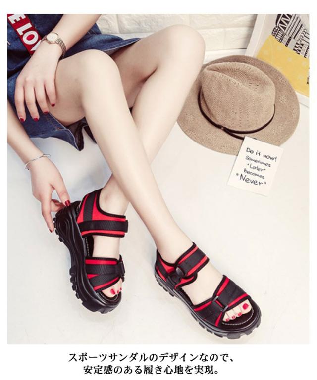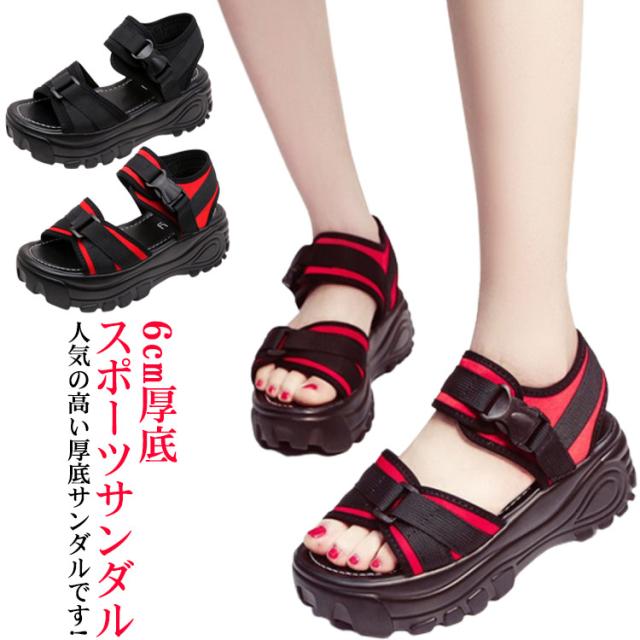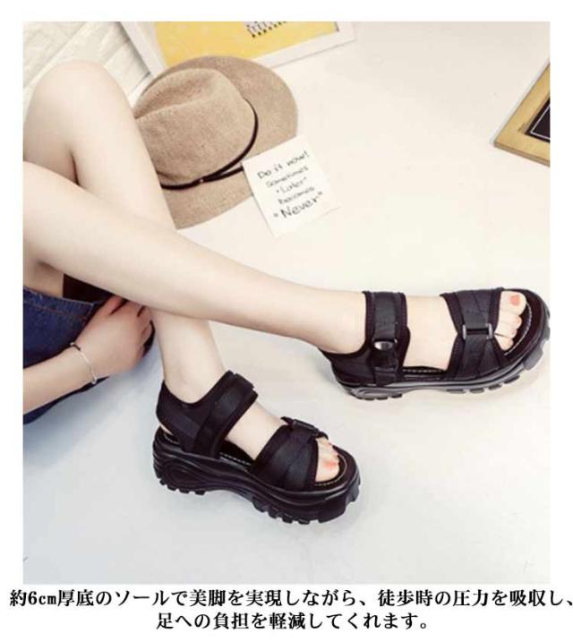 スポーツサンダル 厚底 レディース 厚底サンダル 6cm コンフォート サンダル スポサン 大きいサイズ 小さいサイズ マジックテープ ビーチサンダル 歩きやすい 軽量 厚底靴 ベルクロ スニーカー スポーツ サンダル 美脚効果 カジュアル シューズ