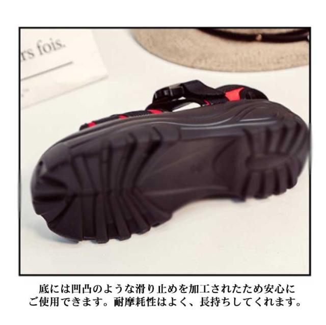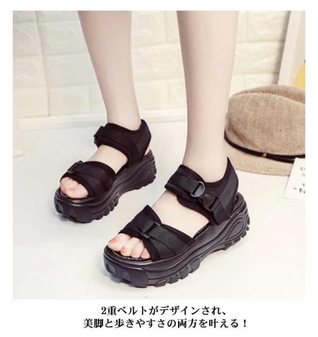 | 【スポーツサンダル】【6cm厚底】 人気の高い厚底サンダルです! この夏のトレンドをコーデにに相性抜群! スポーツサンダルのデザインなので、安定感のある履き心地を実現。 肌を露出させすぎないデザインなので、サンダルが苦手な方にもおすすめ。 2重ベルトがデザインされ、美脚と歩きやすさの両方を叶える! 柔らかいインソールで長時間歩いても足が疲れ にくく、履き心地がとてもいいです。 約6cm厚底のソールで美脚を実現しながら、徒歩時の圧力を吸収し、足への負担を軽減してくれます。 底には凹凸のような滑り止めを加工されたため安心にご使用できます。耐摩耗性はよく、長持ちしてくれます。 ベルトの部分はマジックテープをデザインされ、足にフィットできるよう、簡単に調整することはできます。 | |