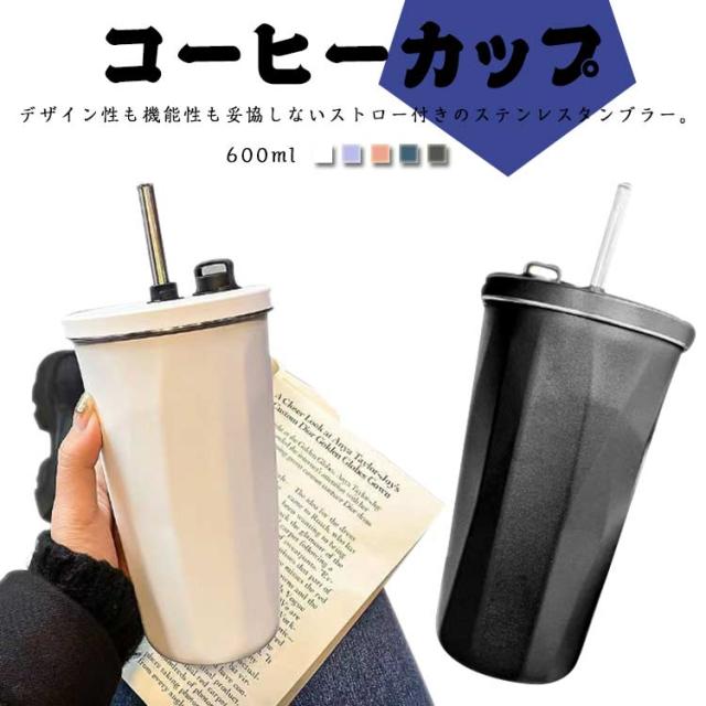 ストロータンブラー 保冷 真空二重 600ml 蓋付き 漏れない ストロー付き マグ タンブラー コップ こぼれない タンブラー ステンレス ストローボトル 保温 カップ 持ち手なし コーヒーマッグ コーヒー 直飲み マイボトル デスクワーク オフィス