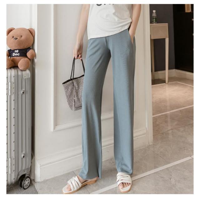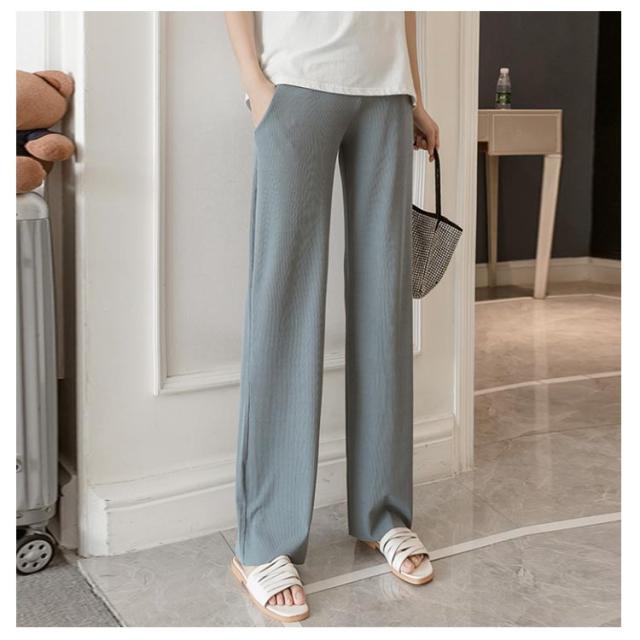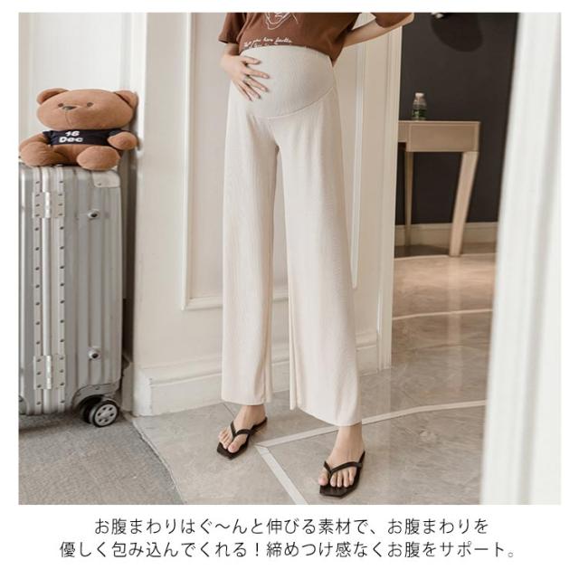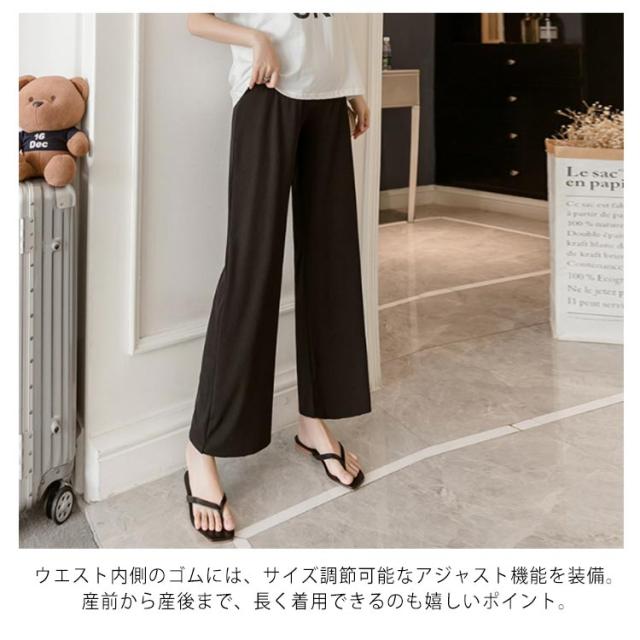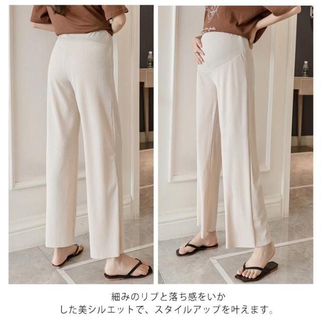 送料無料 マタニティ パンツ リブ 9分丈 ワイドパンツ 妊婦 ロングパンツ ガウチョパンツ 春夏 ボトム フレア 薄手 産前 産後 マタニティウェア 長ズボン ゆったり ルームウェア 部屋着 シンプル すっきり 美脚 着痩せ