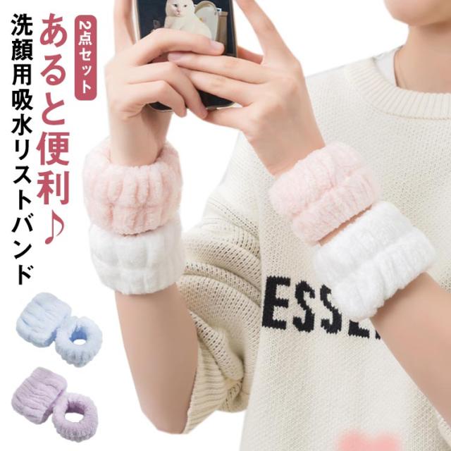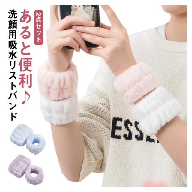吸水リストバンド 2点セット リストバンド 吸水 洗顔 袖濡れ防止 服濡れ防止 マイクロファイバー 髪 お風呂上がり メイク 大人 キッズ 入浴 ヘアゴム シュシュ フリーサイズ 新生活 母の日 プレゼント ギフト