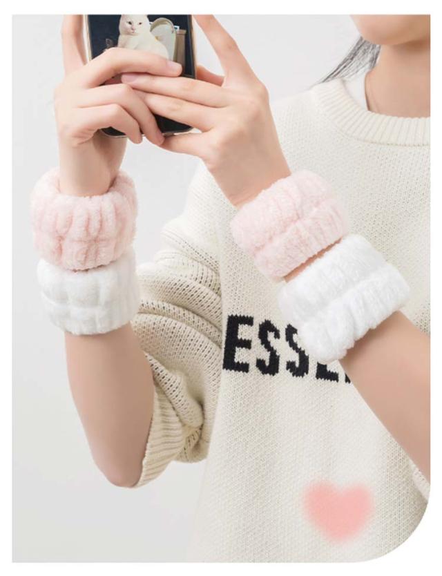 | ・あると便利♪洗顔用吸水リストバンド ・手首にはめて洗顔時の袖ぬれを防ぐ、たっぷり吸水性&ふわふわ触感が気持ちいいリストバンド。 ・ふんわりなめらかな肌心地とボリューム感をあわせ持った毛足の長いマイクロファイバー素材でできています。 ・洗顔時、手首にはめて袖がぬれるのを防ぎます。 ・お風呂上りに髪の毛をまとめて吸水シュシュとしてもお使いいただけます。 | |
