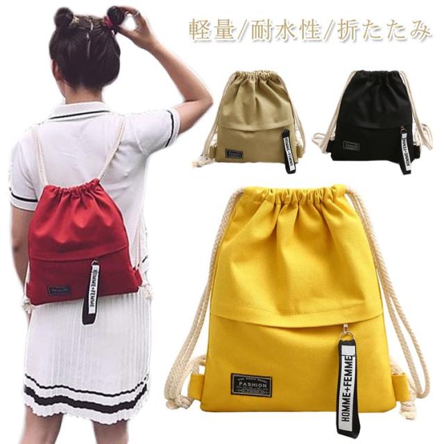 ジムサック ナップサック キャンバスバッグ エコバッグ リュックサック カバン 鞄 かばん 中学生 小学生 アウトドア 韓国ファション 折たたみ コンパクト 携帯用 バックパック 通学 通勤 サブバッグ 無地 カジュアル シンプル 可愛い 送料無料