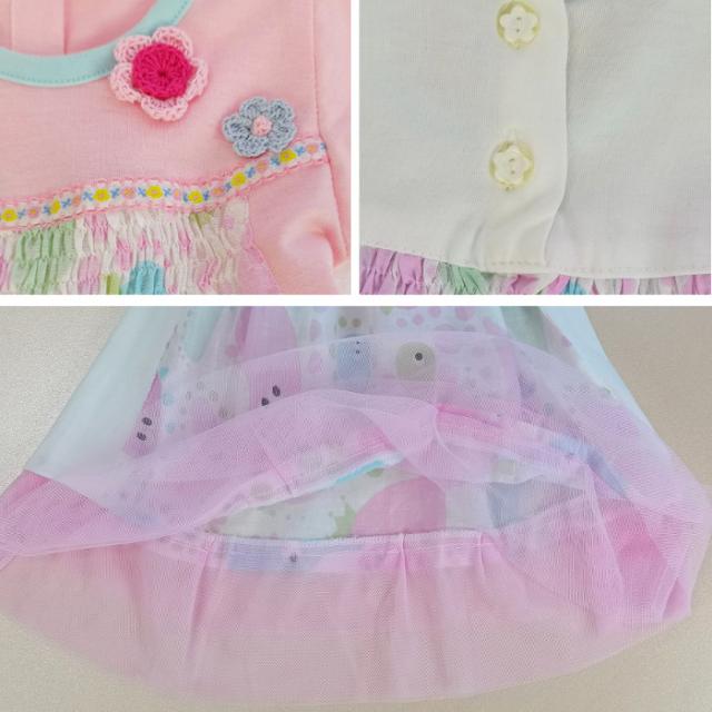 袖や裾にフリル、お花モチーフ、やさしいパステルカラーの配色でとってもガーリーな印象に☆