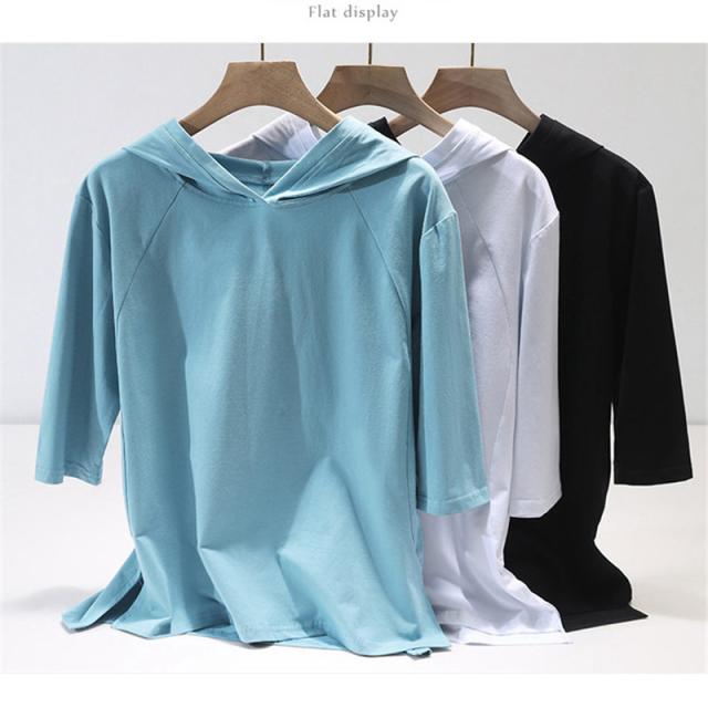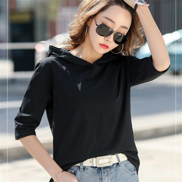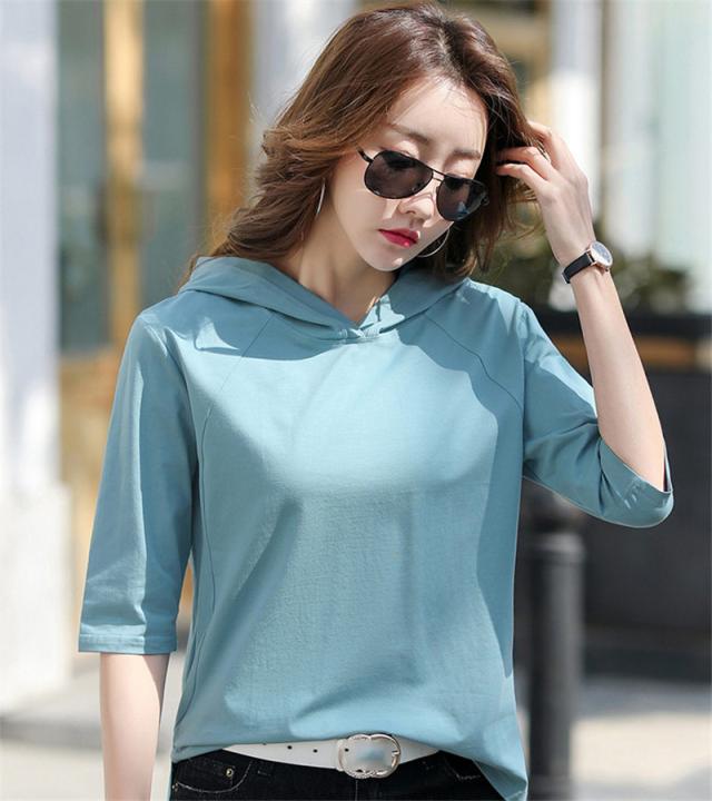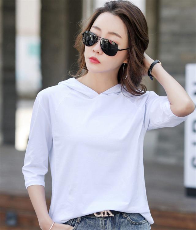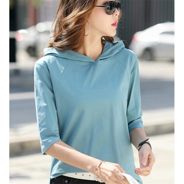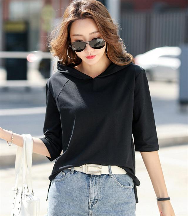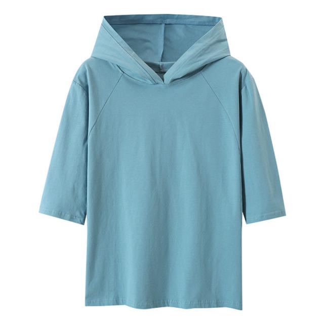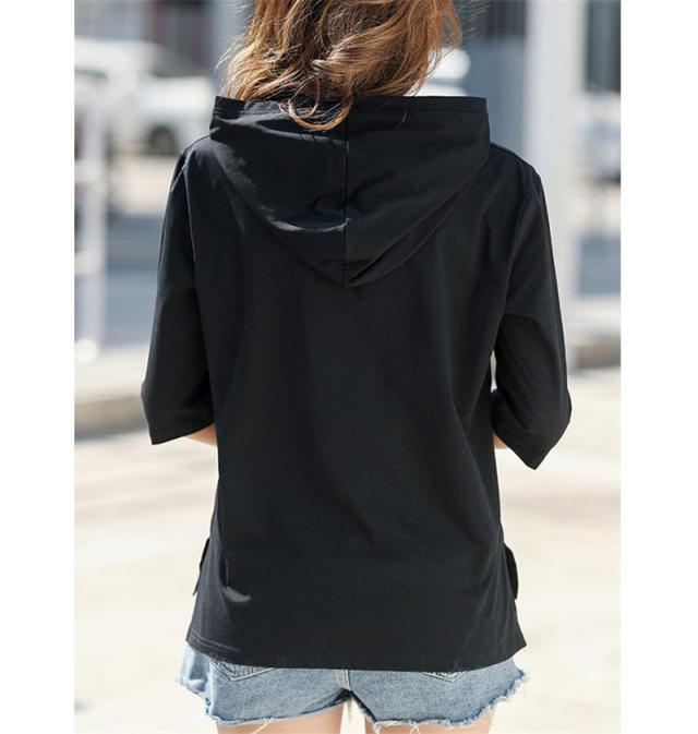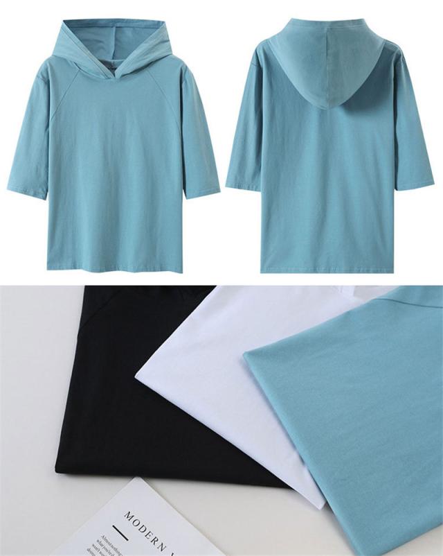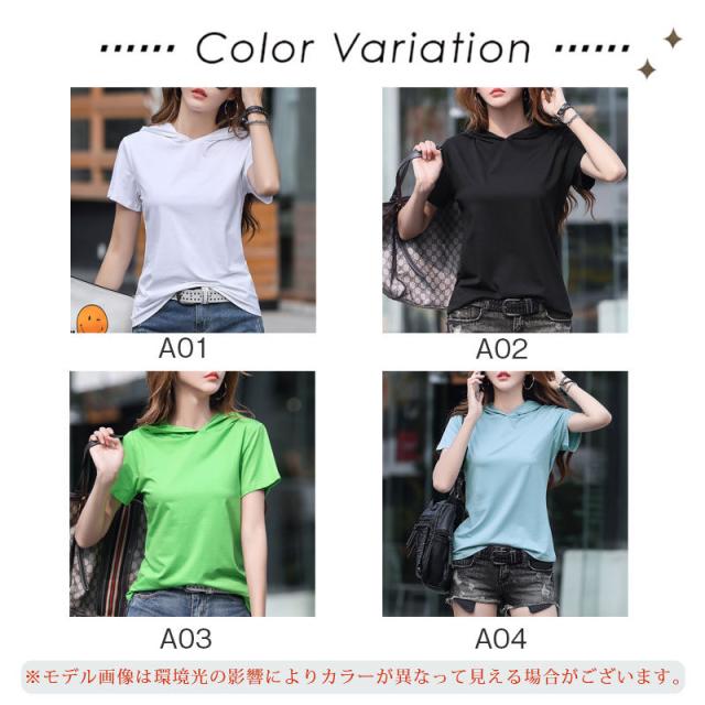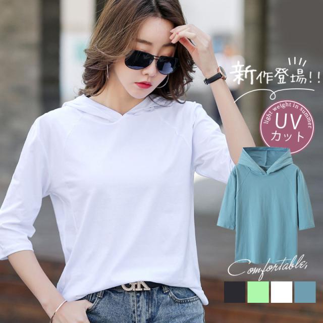 半袖パーカー レディース パーカー 五分袖 着痩せ フード付き ゆったり UVカット Tシャツ カジュアル カットソー トップス