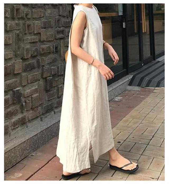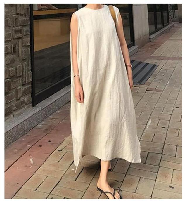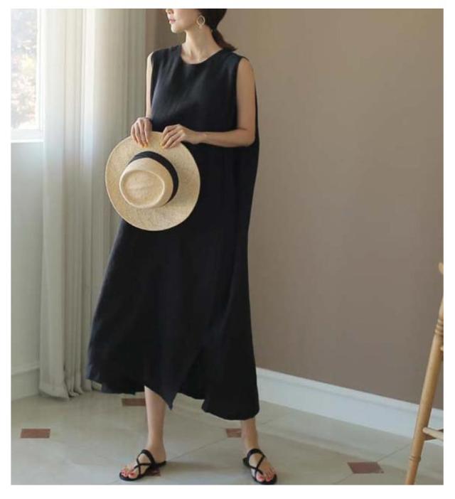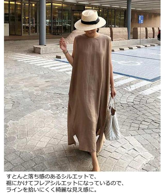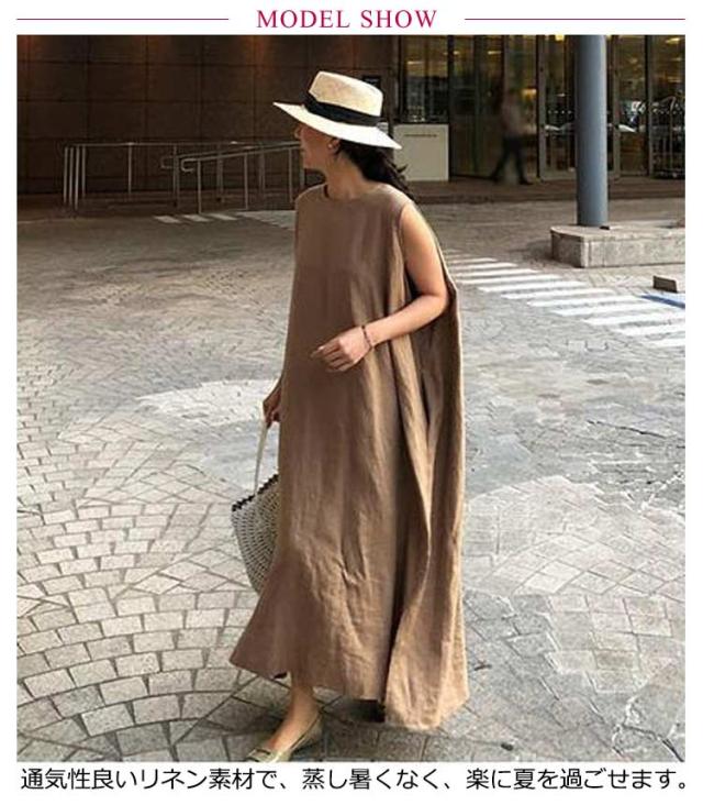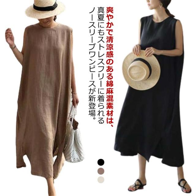 リネンワンピース リネン ロングワンピース コットン ノースリーブ マキシワンピース 亜麻 夏 リゾート レディース ナチュラル エスニック 韓国ファッション リネン混 タンクトップ 体型カバー ロング丈 きれいめ マキシワンピ 無地 30代 40代 黒 送料無料